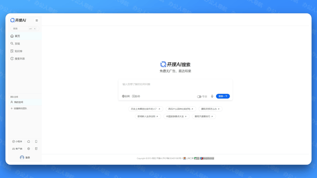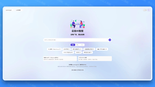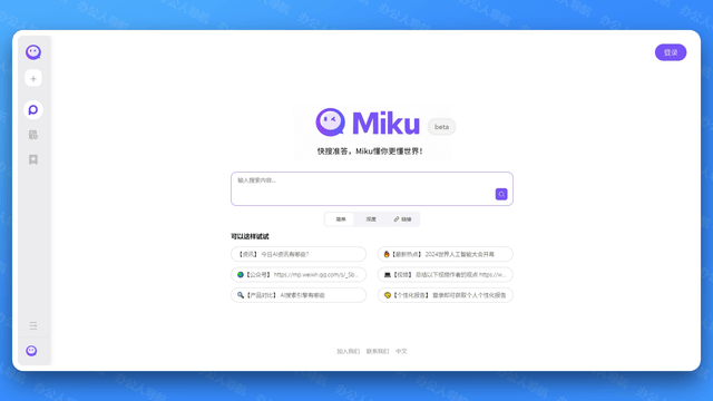 MiKu是一款专注于供给快速和精确搜刮成果的AI搜刮引擎。并供给间接、精准的谜底。人工智能就会帮我们收集拾掇阐发并给到最终的成果。旨正在为用户供给愈加智能、精准和全面的搜刮体验。云言AI智搜完全免费!整合全网消息,我们只需输入本人的问题需要的消息,