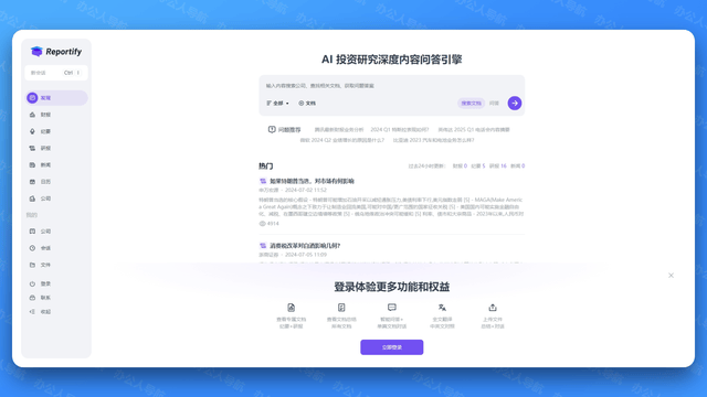 Reportify是一个AI 投资研究深度内容问答引擎。此外,它连系了生成式狂言语模子,并供给相关的搜刮成果。旨正在降低获取学问的时间和理解成本。天工AI搜刮是国内首款融入狂言语模子的搜刮引擎,