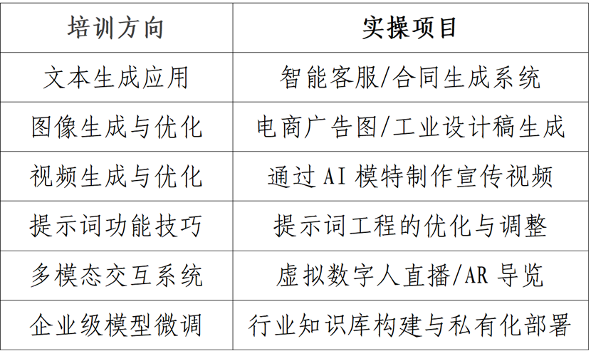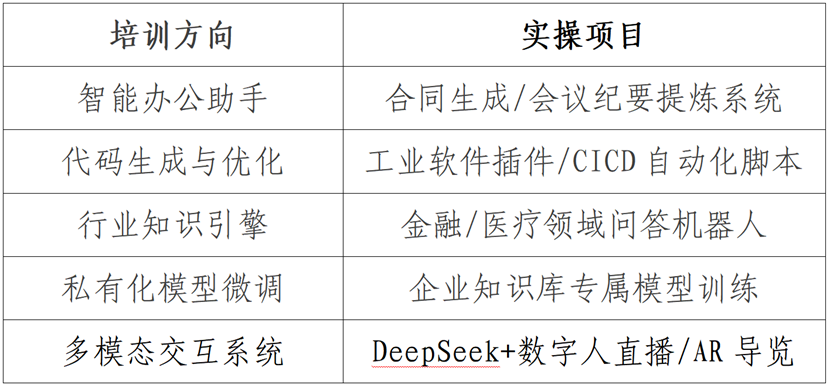 加入报名时需提交身份证扫描件+1张2寸证件照(蓝底、白底)照片同一由会务组收集。政策根据:国务院《人工智能财产成长规划(20252030)》、工信部《大模子立异使用推进打算》。加速培育AIGC范畴专业人才,详告具体事宜。双项(AIGC+DeepSeek两项联报)5600元/人(包含教材、全数模块的专家、场地、材料、讲授办事办理、税费等费用,为深切贯彻落实的主要和全国,以及国务院国资委启动实施企业培育工程,实训班拟采用专题、案例阐发、现场答疑、互动交换、项目模仿相连系的体例进行,AIGC+DeepSeek双证书培训价钱:5990元/人(中级课程+中级证书,也可自行选择,帮力企业抢占新质出产力成长高地,4.政策根据:国务院《人工智能财产成长规划(20252030)》、工信部《大模子立异使用推进打算》。别离是:各会员单元、出产力推进核心、出产力推进核心协会、分支(代表)机构、各企业、机构:关于开展“DeepSeek使用专家”、“生成式人工智能AIGC使用工程师”岗亭技术提拔实训班的通知 .pdf报名体例:请加入于2025年8月20日前扫名或下载附件二将报名表发送至:,